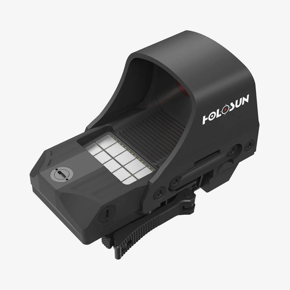 Das Holosun HS510C offene Reflexvisier mit rotem Absehen bietet ein Multi-Absehen-System mit umschaltbaren Absehen, ein effizientes Solarpanel mit automatischer Helligkeitsregelung, eine breite Frontlinse und ein langlebiges Aluminiumgehäuse mit Titanhaube. Es ist ideal für dynamische Disziplinen.